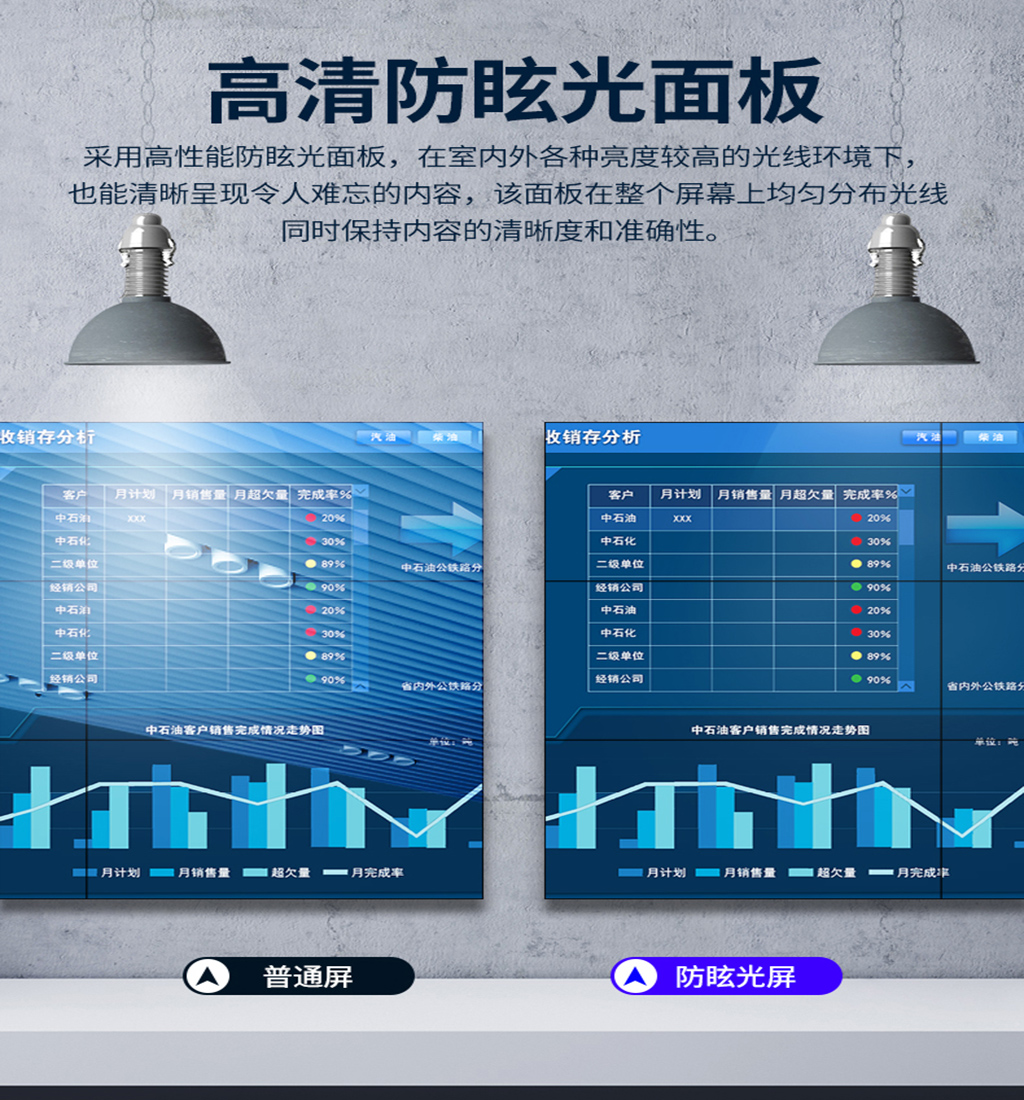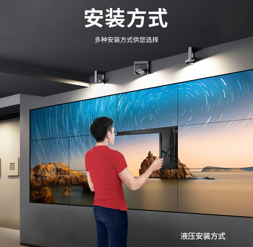原装工业液晶面板,性能高,使用寿命达3万小时以上,满足7*24小时全天不间断工作;超窄边框,3.5mm、1.7mm、0.88mm各种拼缝规格。